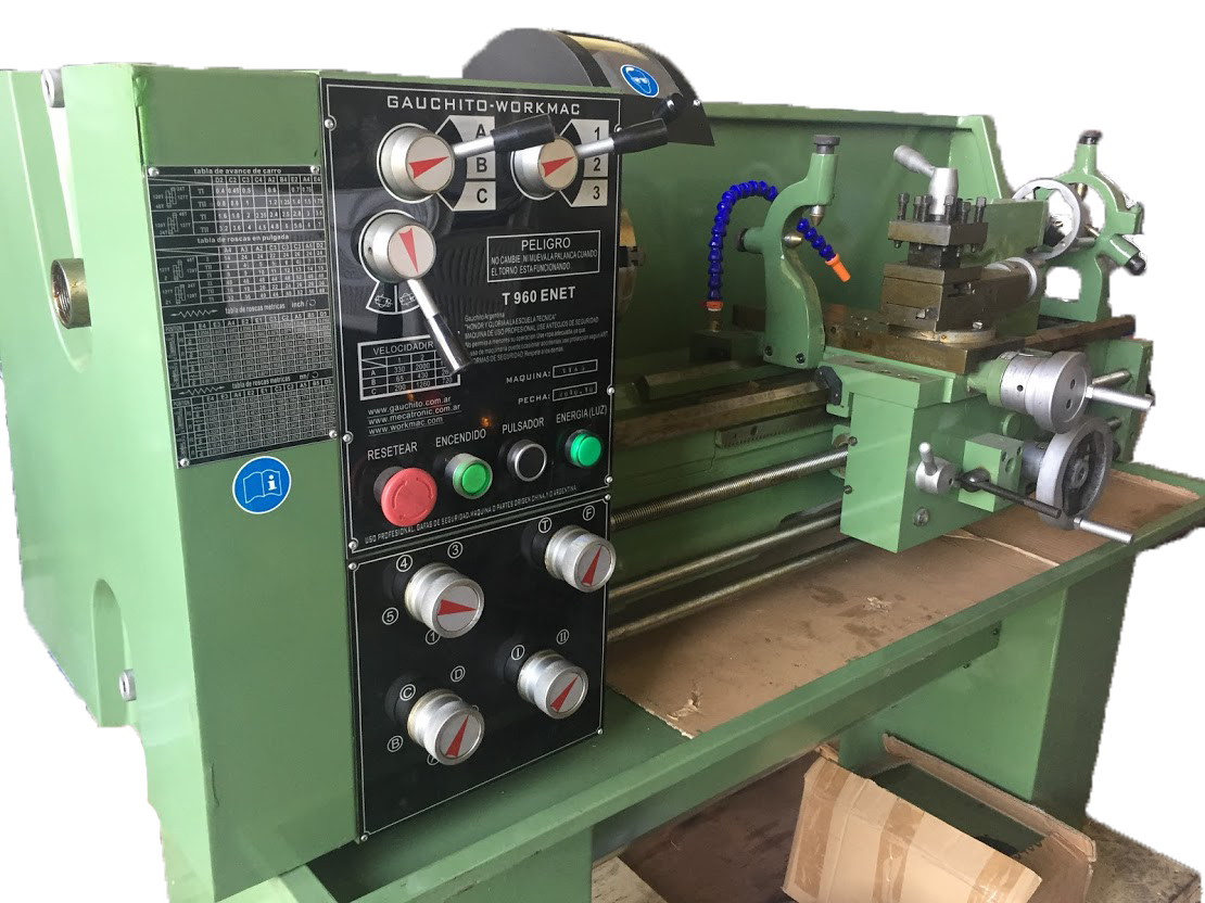 BANCADA DESMONTABLE (VOLTEO 440MM) BANCADA TEMPLADA, CAJA DE VELOCIDADES CON ENGRANAJES TEMPLADOS EN BAO DE ACEITE. CONTRAPUNTA GRADUADA CONO MORSE 3, CAJA TIPO NORTON PARA ROSCAR MTRICO (29 PASOS DE 0.2 A 4.5 MM ), PULGADA (40 PASOS DE 4 A 112 H/PULG), POSSE LUNETA FIJA Y MVIL. PASAJE DE HUSILLO DE 38 MM ROSCADO EN SU PARTE POSTERIOR. IDEAL PARA TODO TIPO TRABAJO. PLATO DE TRES MORDAZAS AUTOCENTRANTE DE 160 MM, Y DE CUATRO MORDAZAS INDEPENDIENTES DE 200 MM, PLATO PLANO, PUNTOS FIJOS, CAJA DE HERRAMIENTAS.
